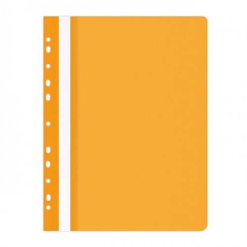 Rýchloviazač PP formátu A4 s priehľadnou prednou stranou a eurodierovaním. Farba matná oranžová.