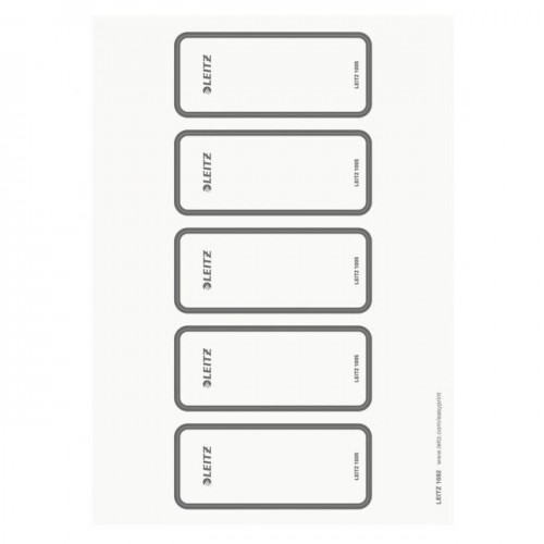 Samolepiace potlačiteľné chrbtové štítky, ktoré uľahčujú a sprehľadňujú popis zakladačov Leitz WOW. Široké 80 mm, pre široký pákový zakladač Leitz 180° WOW (1005). Štítky sú perforované na hárku A4 pre jednoduchšiu manipuláciu. Navrhnite a vytlačte si svoj štítok na www.esselte.com/easyprint . 1 balenie = 10 hárkov (50 štítkov). Vhodné do laserových i atramentových tlačiarní a kopírok. Faba biela.