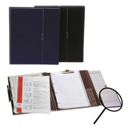 Bordová konferenčná doska Panta Plast Optimus s klipom a krúžkovou väzbou vo formáte A4 je uzatvárateľná doska na patent z odolného PVC materiálu. Na ľavej strane má euroobaly a na pravej sa nachádza poznámkový blok s klipom.