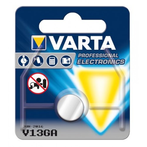 Alkalická gombíková batéria Varta V13GA s väčším výkonom má nerezové pokrytie, ktoré neobsahuje ortuť. Má dlhú životnosť a vynikajúco sa hodí do hodiniek, kalkulačiek. Balenie obsahuje 1 ks.