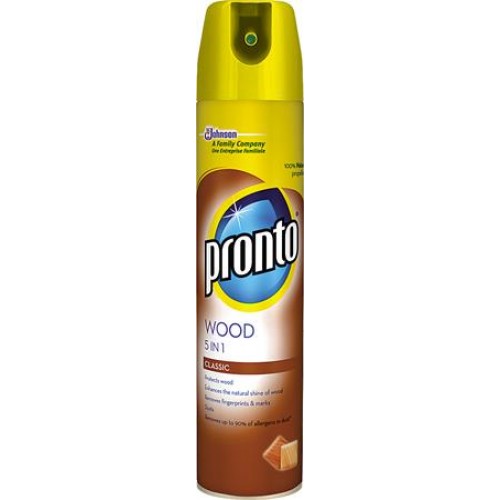 Pronto Classic na nábytok 5v1 250 ml je čistič nábytku s jedinečnou formulou. Každondenne ochranańuje drevo, zvyšuje lesk, odstraňuje odtlačky, škvrny a nečistoty. Po očistení je menej prachu aj celý týždeň. Pronto Classic odstraňuje prach a 90% alergénov.
