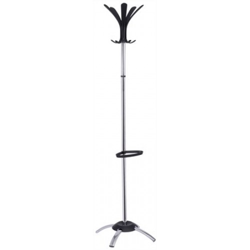 Stojanový vešiak Alba Cleo kovový chróm. Vešiak je vyrobený z kombinácie kovu a plastu. Obsahuje 5 kusov vešiakov na kabáty, 5 kusov malých vešiakov na doplnky, držiak na dáždniky. Výška 175 cm, priemer 30 mm, priemer podstavca 50 cm. Hmotnosť 2,4 kg. Dodávané v demontovanom stave.