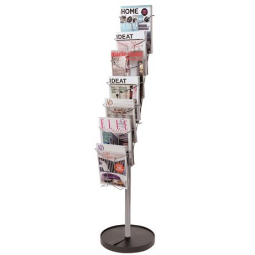 Kovovosivý stabilný stojan na katalógy Alba so 7 priečinkami, so silnou konštrukciou a kapacitou 400 listov je vhodný na dokumenty formátu A4. Hmotnosť stojana je 8,5 kg, výška 150 cm, priemer podstavca 38 cm a hĺbka priečinkov 4 cm.