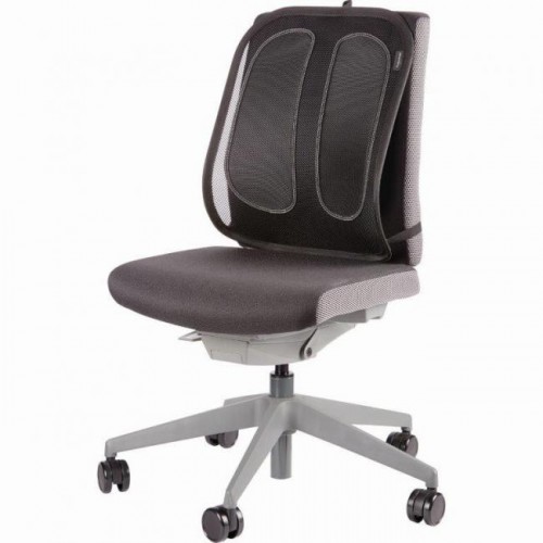 Opierka chrbta s vertikálne nastaviteľnou bedrovou opierkou pamäťovej peny na zníženie napätia chrbta. Tri napínacie nadstavce eliminujú potrebu opätovného nastavenia. Opierka jemne kopíruje obrysy chrbta, sieťovaná látka zabezpečuje vetranie miesta dotyku s chrbtom. Použiteľná na ľubovoľnú stoličku. Farba čierna.