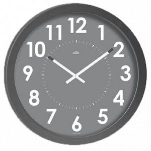 Quartz nástenné hodiny s priemerom až Ø 55cm. Ideálne pre veľké priestory. Tichý chod, vynikajúca čitateľnosť až do 40 m, vďaka špičkám ručičiek, ktoré sú zvýraznené tmavou farbou dreveného uhlia. Kryt ciferníka hodín z tvrdeného plastu. Farba strieborná, sivá.