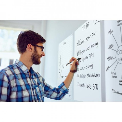 Rolka fólie s 15 štvorčekovanými listami (rozmer štvorčeka 2,5 × 2,5 cm) z bieleho polypropylénu v šírke 60 cm. Perforácia po 80 cm. Popisovanie permanentnými popisovačmi (edding). Elektrostatický náboj umožní priľnutie filmu na rôzne povrchy - sklo, stenu, drevo a tapetu bez použitia lepidla. Fóliu jednoducho odmotáte, v perforovanom mieste odtrhnete a zľahka pritlačíte na daný povrch. Na obale hárku je perforácia na uchytenie balenia na flipchartovú tabuľu. Povrch fólie umožní tiež udržanie papierových poznámok bez ich nalepenia. Väčšie balenie 4 blokov.