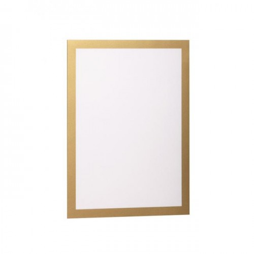 Samolepiaci informačný panel s prednou magnetickou časťou. Ideálny na vystavovanie kľúčových informácií, špeciálnych oznamov alebo dôležitých čísel. Informácie sa ľahko vymieňajú a sú čitateľné z oboch strán, ak sa panel umiestni napr. na okno alebo priehľadné dvere. Vhodný na hladké a pevné povrchy. V prípade potreby je ľahko premiestniteľný bez potreby vŕtania. Formát A4, farba rámu zlatá. V balení 2 ks.