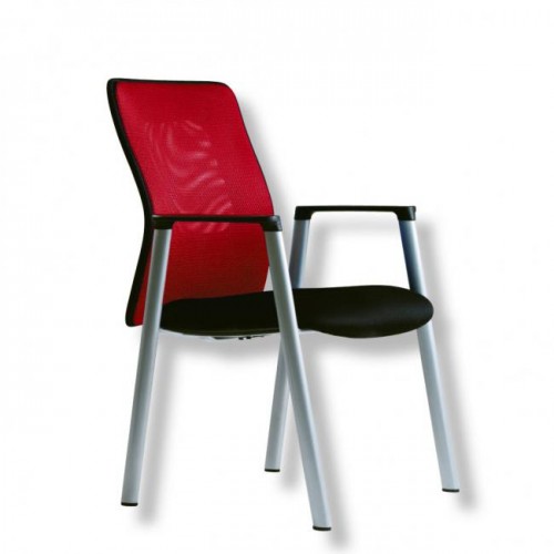 Rokovacia čalúnená stolička s pevnou robustnou konštrukciou. Sivá kostra, operadlo čalúnené samonosnou sieťovinou, nosnosť 120 kg. Poťah látka.