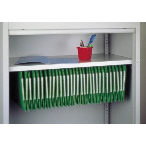 Náhradná polica ku dvojdverovej skrini. Náhradná polica je vyrobená z ocele. Je kľúčom uzamykateľná. Má 2 bodovú bezpečnosť. Polica umožňuje aj skladovanie závesných zakladacích dosiek.
