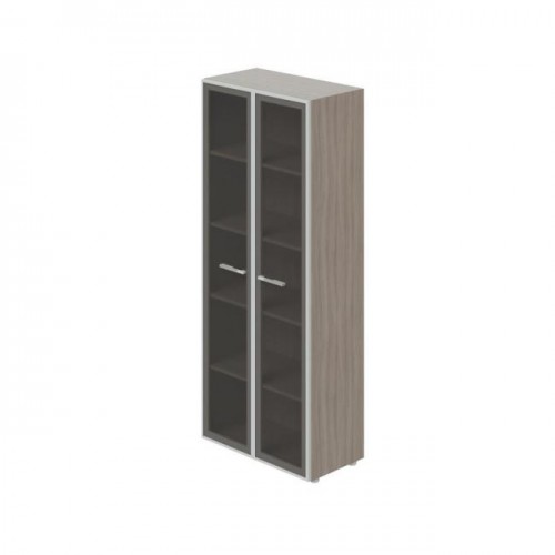 Policová skriňa Lenza Wels, 79,8x196,5x42,5cm, presklené dvere, driftwood/sivá
