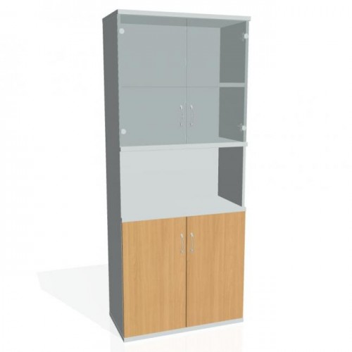 Kombinovaná skriňa - dvere/nika. Kancelárske skrine STRONG majú robustnú konštrukciu a vyššiu nosnosť políc ako bežné kancelárske skrine.V ponuke sú skriňové moduly s výškou 185 cm, 111 cm alebo 74 cm a šírky 80 cm alebo 40 cm. Hĺbka všetkých modelov skriňového radu STRONG je 40 cm.