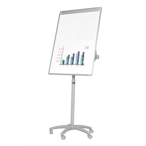 Mobilná flipchartová tabuľa Victoria s rozmermi povrchu 70 x 100 cm má magnetický popisovačom popisovateľný povrch, 5 koliesok s brzdou, nastaviteľnú výšku 165-200 cm a plastový držiak na písacie potreby. Vzdialenosť upínadiel papiera je nastaviteľná. Dodávame v demontovanom stave.