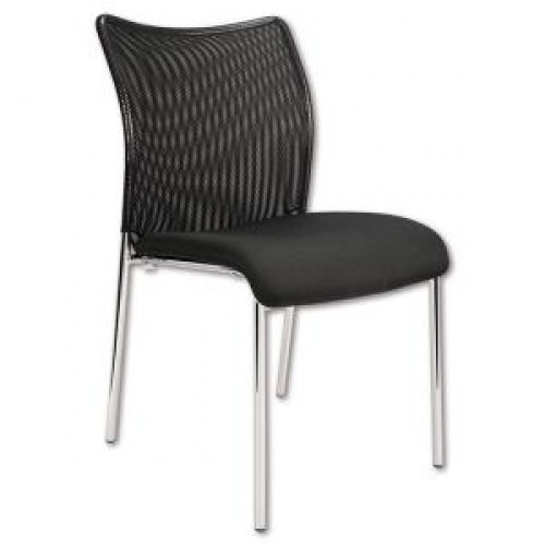 - Stohovateľná konferenčná stolička s látkovým sedákom a sieťkovým operadlom moderného dizajnu.