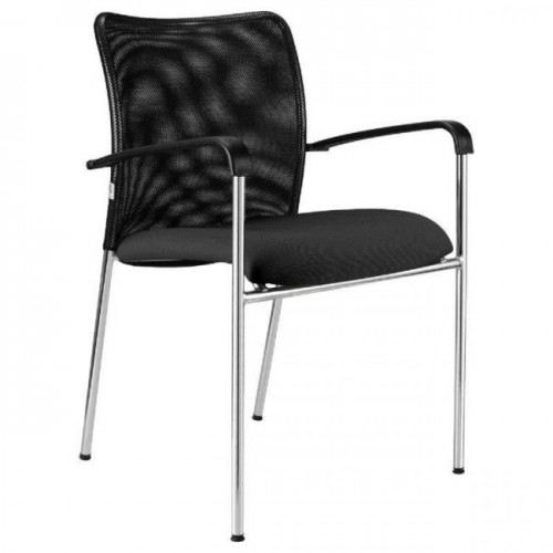 - Stohovateľná konferenčná stolička s látkovým sedákom a sieťkovým operadlom moderného dizajnu.
