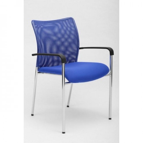 - Stohovateľná konferenčná stolička s látkovým sedákom a sieťkovým operadlom moderného dizajnu.