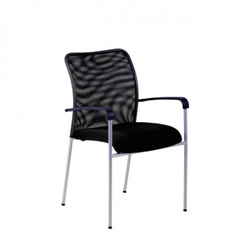 Rokovacia čalúnená stolička v modernom dizajne, stohovateľná. Sivý oceľový rám, operadlo čalúnené samonosnou sieťovinou, nosnosť 120 kg.