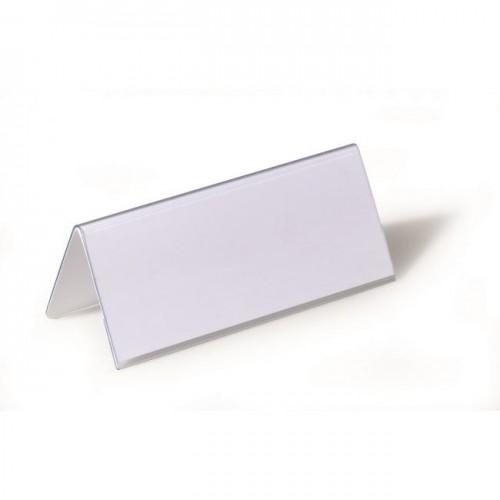 Obojstranne čitateľná stolová menovka z pevného PVC, vhodná na konferencie, recepčné pulty, ceny tovarov a popis produktov. Dodávaná s vymeniteľnou prázdnou kartou. Väčšie balenie 25 ks.