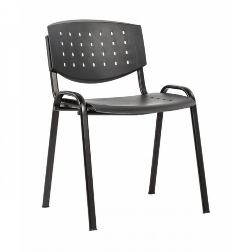 Čierny lakovaný oceľový rám (profi l ovál), perforovaný plastový sedák a operadlo.