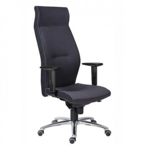 Kancelárske kreslo s opierkou hlavy, výškovo nastaviteľnými podrúčkami a dopredným náklonom sedáku pre zlepšenie krvného obehu.