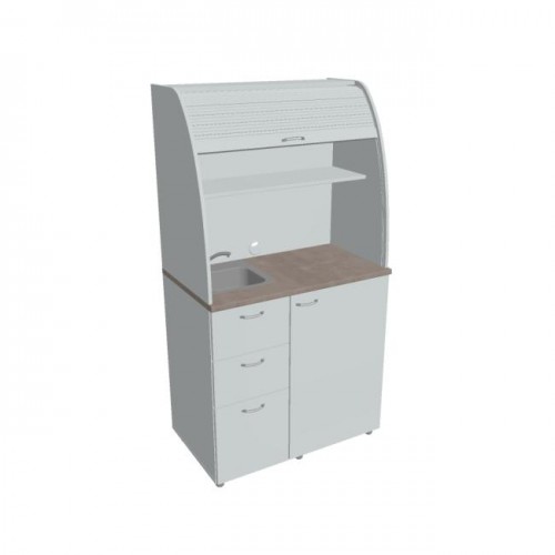 • Dve police vo vrchnej časti kuchynky poskytujú dostatočnú kapacitu na poháre, šálky a taniere. Na pracovnú dosku môžete umiestniť napr. kávovar a káblovou priechodkou v zadnej časti vyvediete kábel z priestoru kuchynky.