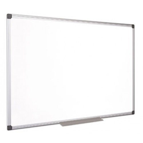 Biela smaltovaná magnetická tabuľa Victoria s rozmermi 100 x 150 cm má popisovačom popisovateľný a za sucha utierateľný oceľový povrch, ktorý je výnimočne hladký a odolný voči poškriabaniu. So širokým sivým držiakom na písacie potreby, miernym odzrkadľovaním s trvácnym hliníkovým rámom, ktorý má sivé zaoblené rohové elementy. Balenie obsahuje súčiastky na upevnenie a držiak na písacie potreby. 25 ročná záruka na povrch.