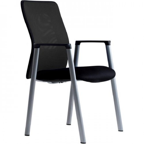 Rokovacia čalúnená stolička s pevnou robustnou konštrukciou. Sivá kostra, operadlo čalúnené samonosnou sieťovinou, nosnosť 120 kg. Poťah látka.