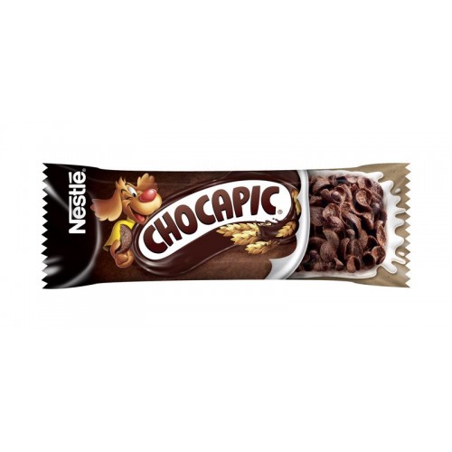 Tyčinka Nestlé Chocapic 25g mliečna čokoláda je extrudovaná cereálna tyčinka polomáčaná v bielej poleve, vyrobená z celozrnnej múky s vitamínmi a minerálmi, ktoré obsahujú železo a vápnik.