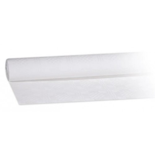 Biely papierový rolovaný obrus (1,2 x 50 m), vhodný na prestieranie stolov v reštauráciách, baroch, na oslavách, svadbách a spoločenských podujatiach.
