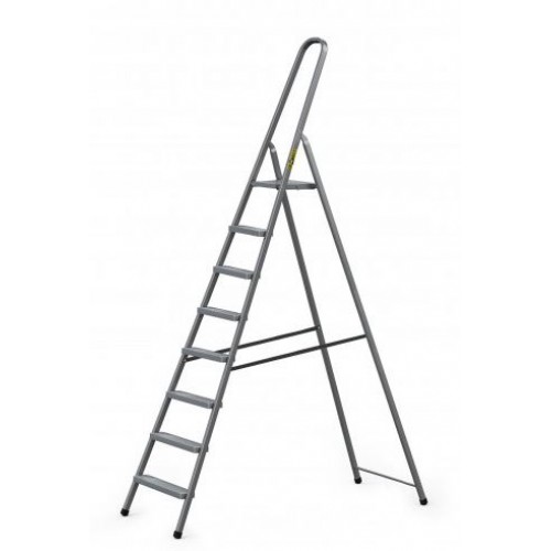 Robustné, veľmi stabilné jednostranné skladacie schodíky, 8 stupňov, max. pracovná výška 3,68 m, nosnosť 125 kg. Hmotnosť: 10,8 kg.