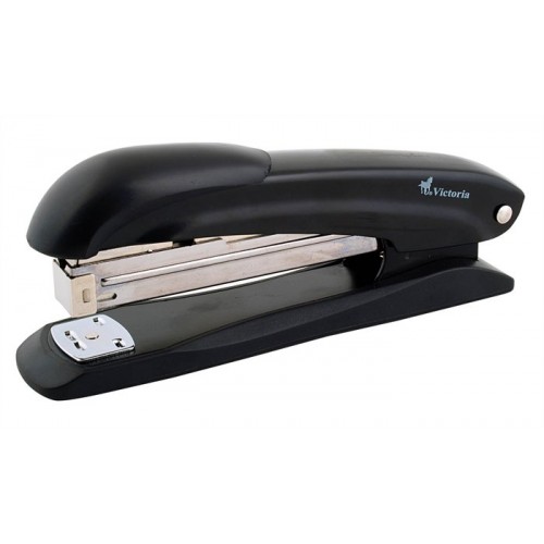 Čierna zošívačka Victoria Full-Strip 24/6 s hĺbkou zošívania 100 mm na 30 listov má kovové telo, rozšívačku a bezpečnú kovovú mechaniku.