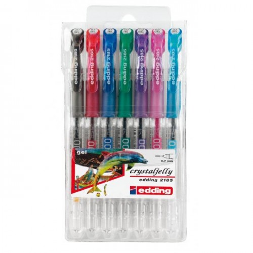 Jednorazový roller edding 2185 crystaljelly plnený špeciálnym gélom. Hrot pera uložený v akrylovej špičke umožňuje plynulé a súčasne veľmi presné písanie. Šírka stopy 0,7 mm. Sada 7 štandardných farieb.