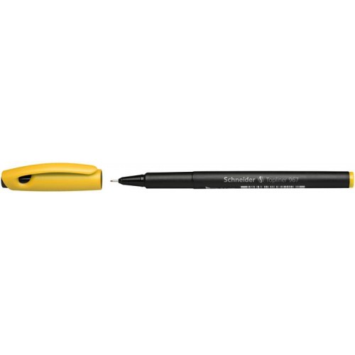 Liner Schneider Topliner 967 0, 4mm žltá. Liner zanecháva tenké a presné písmo. Má nehrdzavejúci hrot, ktorý zabezpečuje súvislé písmo. Atrament je na vodnej báze. Telo je čierne plastové. Farba náplne sa zhoduje s farbou konca pera. Hrúbka písma 0, 4 mm.