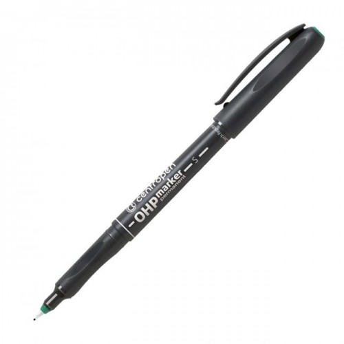 Permanentné popisovače na alkoholovej báze s ergo držaním na popisovanie transparentných fólií do spätných projektorov, ale tiež na plastické hmoty, sklo a pod. Väčšie balenie 10 ks v jednej farbe. Hrot okrúhly, šírka stopy 0,3 - 0,4 mm. Farba zelená.