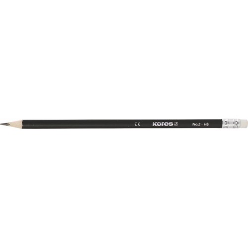 Ceruzka s gumou Kores trojhranná HB. Ceruzka s elegantým dizajnom, lakovaným telom. Vyrobená z kvalitného dreva, vysokoodolná voči lámaniu, ľahko strúhateľná.