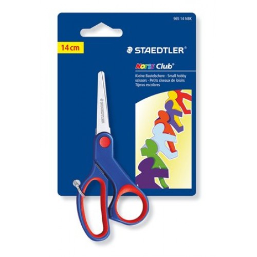 Nožnice školské 14 cm STAEDTLER Noris Club modré Nerezová oceľ, zaoblené rohy, mäkká, ergonomická rúčka, dlhá životnosť. Cena za kus.