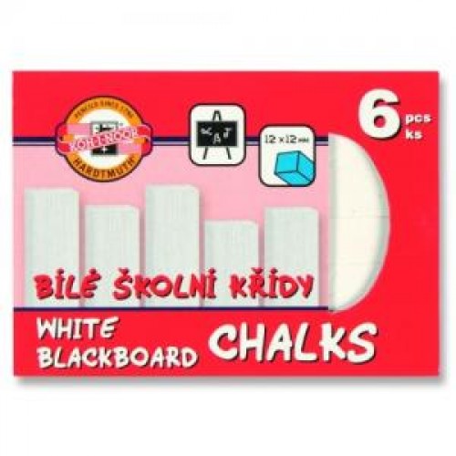 Školské biele kriedy v tvare hranolu 12 mm x 12 mm s dĺžkou 100 mm, určené na písanie na školské tabule. Sada obsahuje 6 ks.