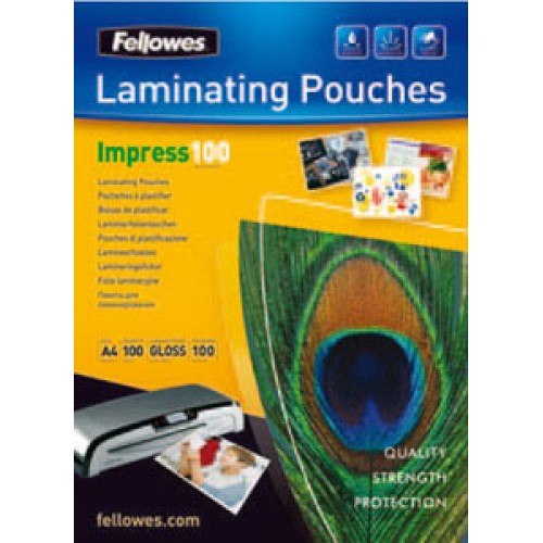 Laminovacie fólie Fellowes lesklé A3 100mic. Laminovacie fólie nielen chránia vaše dokumenty, ale dopomáhajú aj k správnemu laminovaniu. Po skončení laminovacieho procesu označenie zmizne. Formát A5, hrúbka 80 mikr., majú lesklý popvrch. Balenie obsahuje 100 kusov.