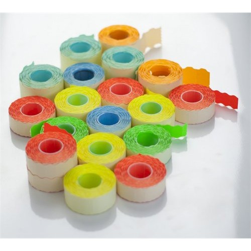 Žlté cenové etikety obsahujúce 10 kotúčov po 1200 ks etikiet.