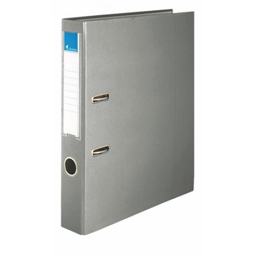 Sivý pákový zakladač Victoria 50 mm bez spodného kovania chráni nábytok a je vhodný na uchovávanie dokumentov formátu A4 a na každodenné použitie. Má chrbtový otvor a vymeniteľný chrbtový štítok. Zvonka PVC povrch, zvnútra kartón.