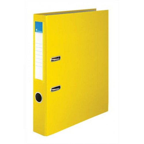 Žltý pákový zakladač Victoria 50 mm bez spodného kovania chráni nábytok a je vhodný na uchovávanie dokumentov formátu A4 a na každodenné použitie. Má chrbtový otvor a vymeniteľný chrbtový štítok. Zvonka PVC povrch, zvnútra kartón.