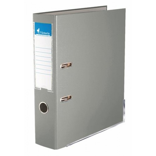 Sivý pákový zakladač Victoria 75 mm s ochranným spodným kovaním je vhodný na uchovávanie dokumentov formátu A4 a na každodenné použitie. Má chrbtový otvor a vymeniteľný chrbtový štítok. Zvonka PVC povrch, zvnútra kartón.