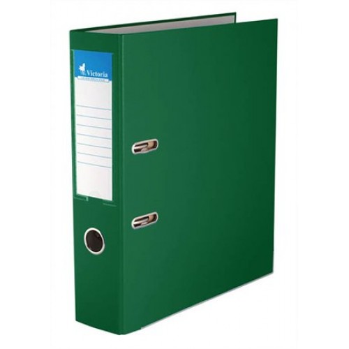 Zelený pákový zakladač Victoria 75 mm s ochranným spodným kovaním je vhodný na uchovávanie dokumentov formátu A4 a na každodenné použitie. Má chrbtový otvor a vymeniteľný chrbtový štítok. Zvonka PVC povrch, zvnútra kartón.